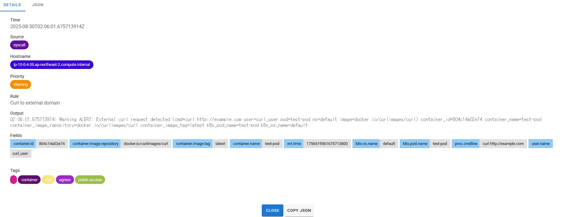 ALERT: External curl request detected (cmd=%proc.cmdline user=%user.name pod=%k8s.pod.name ns=%k8s.ns.name image=%container.image.repository)