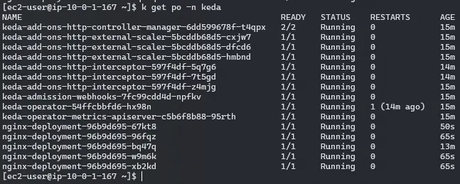 nginx 파드가 성공적으로 스케일링된 모습 확인 가능