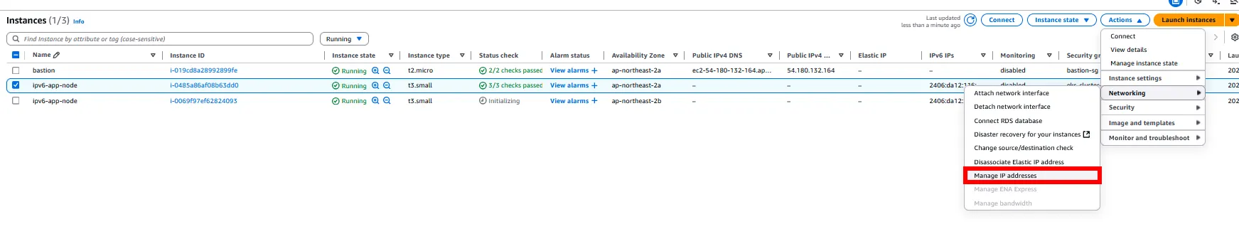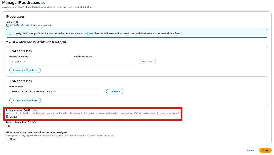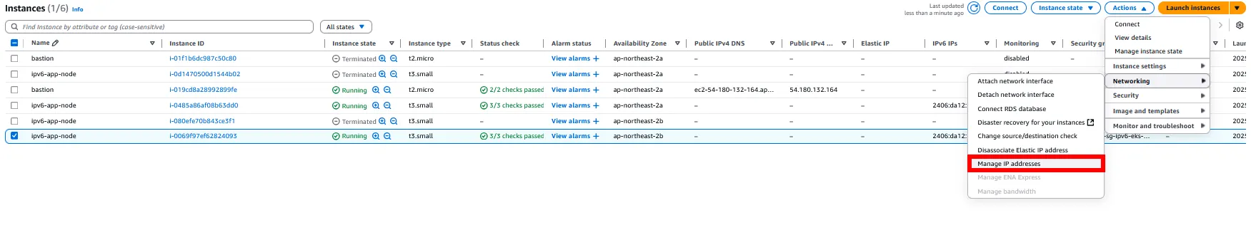 target type을 instance로 설정하고 싶다면 node instance에서 Assign primary IPv6 IP를 활성화해야 합니다.