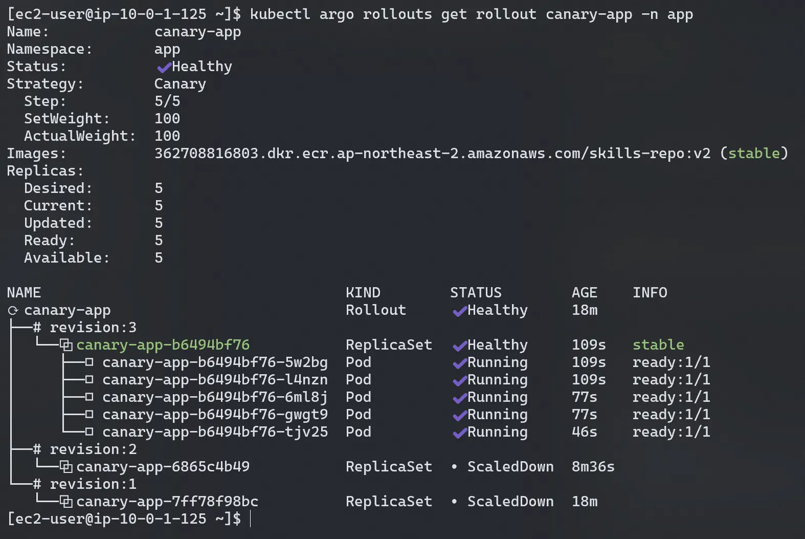 설정한 시간인 30초 마다 weight 만큼 pod가 증분하는 걸 확인 가능하다.