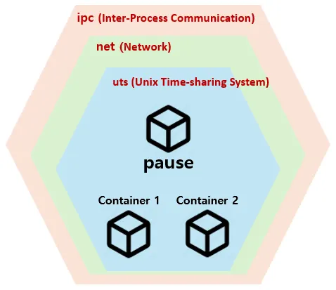 Pause 컨테이너의 UTS 네임스페이스를 Pod 내의 다른 컨테이너들과 공유함으로써 모든 컨테이너가 동일한 호스트 이름을 가지게 됩니다.