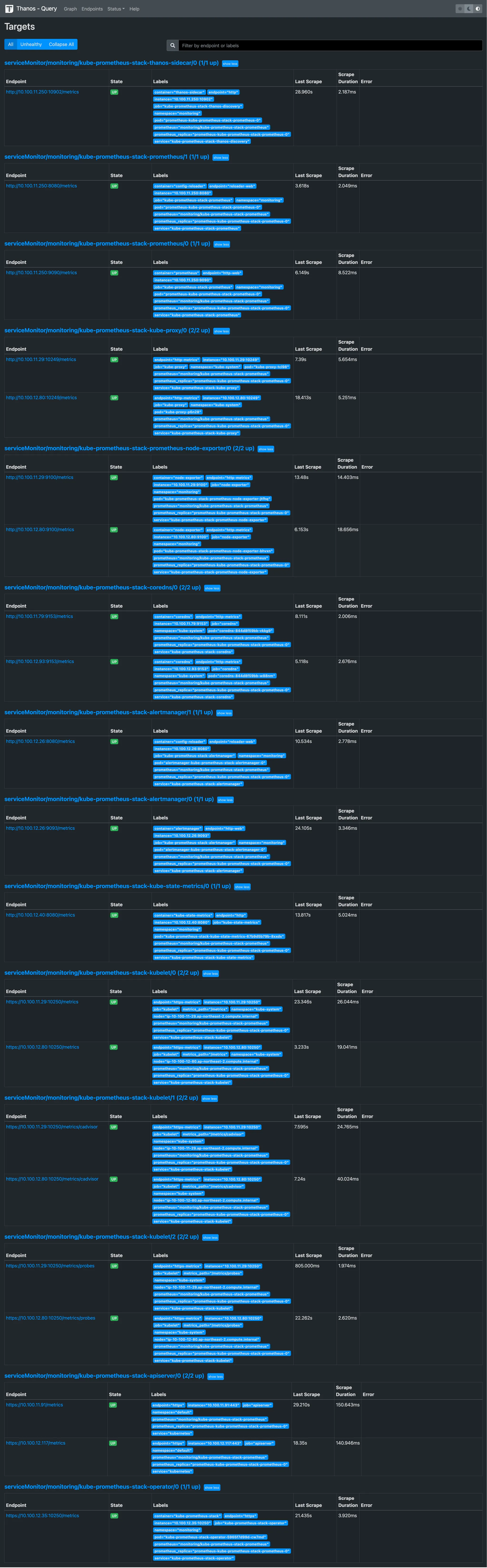Thanos에 frontend에 접속하여 target을 확인하면 아래와 같이 적용되어 있다.
