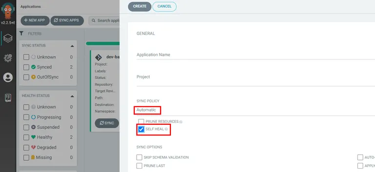 sync policy가 auto로 설정된 경우 선택할 수 있는 옵션입니다. argocd로 동기화된 리소스를 항상 git에 있는 의도된 상태로 보장해주는 기능입니다.
