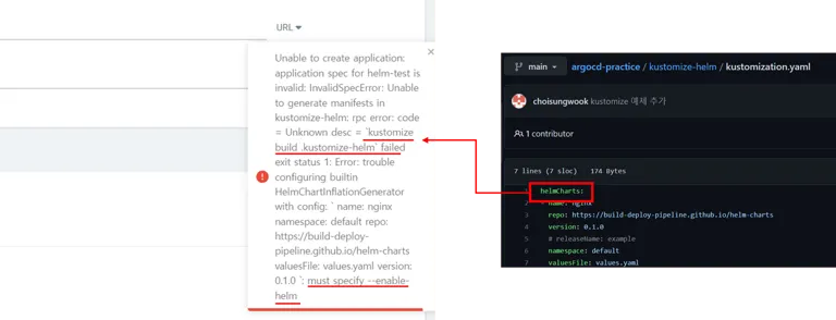 플러그인이 올바르게 작동하려면 공식 문서를 참고하여 kustomize build 옵션을 수정해야 합니다. kustomize build 옵션은 argocd-cm configmap에서 설정할 수 있습니다. 아래 예제는 helm 플러그인을 사용하기 위해 --enable-helm 인자를 build 옵션에 추가한 것입니다.