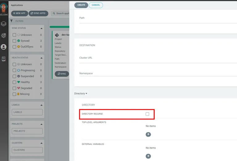argocd는 path로 선택한 리소스 파일만 배포합니다. 지정한 경로에 폴더가 있다면, 폴더의 리소스는 배포되지 않습니다.