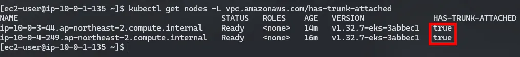 kubectl get nodes -L vpc.amazonaws.com/has-trunk-attached