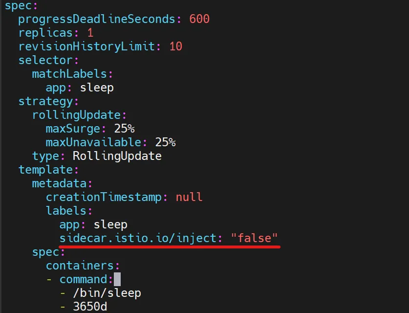 sidecar.istio.io/inject: "false"