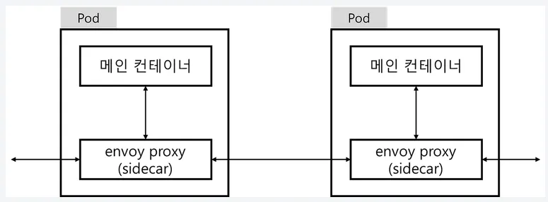 마이크로서비스로 요청하면 Enovy Proxy가 대신 받아 전달하고 응답도 전달 받아 전달을 진행
